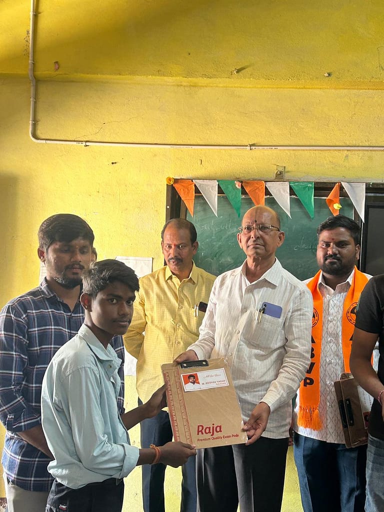 మేడ్చల్, సూర్య న్యూస్ : పదో తరగతి వార్షిక పరీక్షల నేపథ్యంలో ప్రభుత్వ పాఠశాలల విద్యార్థుల్లో ఆత్మవిశ్వాసం నింపేందుకు అఖిల భారత విద్యార్థి పరిషత్ (ఏబీవీపీ) మేడ్చల్ జిల్లా చింతల్ నగర్ శాఖ ఆధ్వర్యంలో వినూత్న కార్యక్రమం చేపట్టారు, షాపూర్ నగర్లోని ప్రభుత్వ ఉన్నత పాఠశాలలో చదువుతున్న సుమారు వంద మంది విద్యార్థులకు ఉచితంగా ఎగ్జామ్ ప్యాడ్లు, పెన్నులతో పాటు తరగతి గదికి రెండు ఫ్యాన్లను ఏబీవీపీ నాయకులు అందజేశారు.