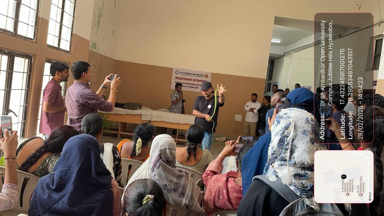 హైదరాబాద్: జూబ్లీహిల్స్లోని డాక్టర్ బి.ఆర్. అంబేద్కర్ ఓపెన్ యూనివర్శిటీ (BRAOU) క్యాంపస్లో శనివారం నిర్వహించిన “పాములపై అవగాహన కార్యక్రమం” అత్యంత విజయవంతమైంది. విశ్వవిద్యాలయ ఫ్యాకల్టీ ఆఫ్ సైన్స్ మరియు జువాలజీ విభాగం సంయుక్తంగా చేపట్టిన ఈ సదస్సు విద్యార్థులు, అధ్యాపకులు మరియు సిబ్బందిలో ఉన్న అపోహలను తొలగించడంలో కీలక పాత్ర పోషించింది.