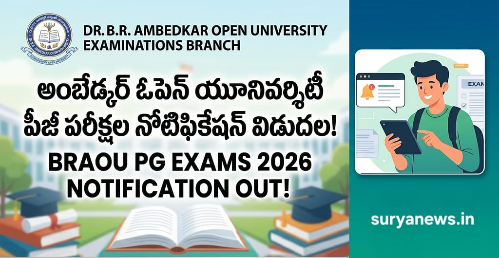 హైదరాబాద్లోని డాక్టర్ బి.ఆర్. అంబేద్కర్ ఓపెన్ యూనివర్శిటీ (BRAOU) పీజీ మరియు డిప్లొమా కోర్సులకు సంబంధించిన మొదటి సెమిస్టర్ పరీక్షల నోటిఫికేషన్ను అధికారికంగా విడుదల చేసింది. పరీక్షల కంట్రోలర్ ప్రొఫెసర్ బి. శ్రీనివాస్ జారీ చేసిన ఈ నోటిఫికేషన్ ప్రకారం, పీజీ మొదటి సంవత్సరం మొదటి సెమిస్టర్ పరీక్షలు మే 8, 2026 నుండి ప్రారంభమై మే 23, 2026 వరకు జరగనున్నాయి. విద్యార్థులు తమ పరీక్షా ఫీజును నిర్ణీత గడువులోగా చెల్లించాల్సి ఉంటుంది. ఈ నోటిఫికేషన్ పీజీ విద్యార్థులతో పాటు, నిర్దిష్ట ఎంబీఏ మరియు డిప్లొమా కోర్సులకు కూడా వర్తిస్తుంది.