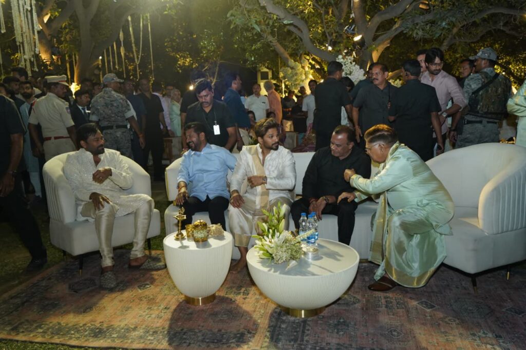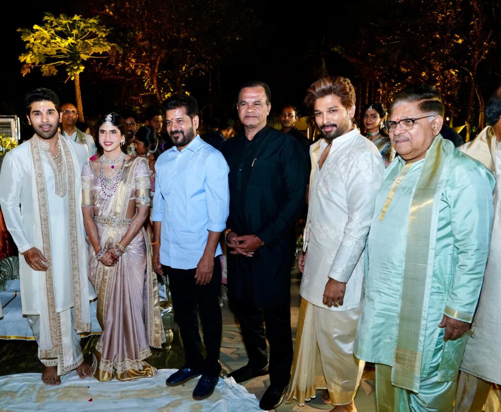 అల్లు శిరీష్ వివాహ వేడుకలో సందడి: నూతన వధూవరులను ఆశీర్వదించిన సీఎం రేవంత్ రెడ్డి, మంత్రి కోమటిరెడ్డి