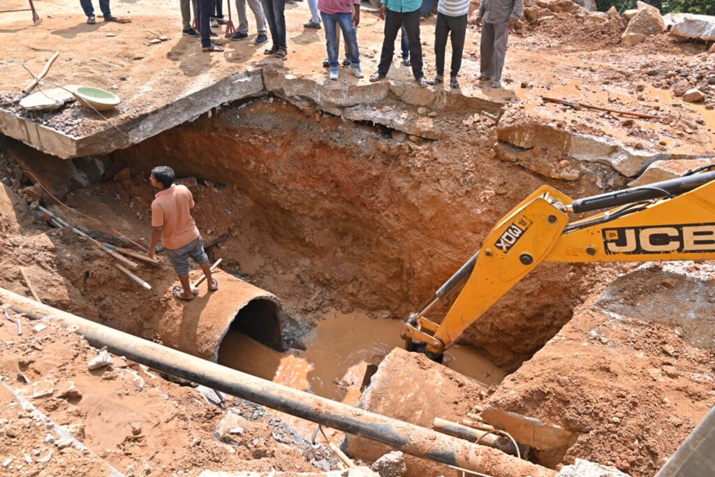 హైదరాబాద్: నగరంలోని మణికొండ ప్రాంతంలో ప్రధాన నీటి సరఫరా పైప్లైన్ పగిలిపోవడంతో ఏర్పడిన అత్యవసర పరిస్థితిని జలమండలి అధికారులు యుద్ధ ప్రాతిపదికన చక్కదిద్దుతున్నారు. మంగళవారం తెల్లవారుజామున మణికొండ వద్ద ధ్వంసమైన 1200 ఎంఎం డయా పీఎస్సీ గ్రావిటీ మెయిన్ పైప్లైన్ మరమ్మతు పనులను జలమండలి ఎండీ అశోక్ రెడ్డి స్వయంగా క్షేత్రస్థాయిలో పరిశీలించారు. అధికారులతో కలిసి పనుల పురోగతిని సమీక్షించిన ఆయన, ప్రజలకు ఇబ్బందులు కలగకుండా తక్షణ చర్యలు తీసుకోవాలని ఆదేశించారు.