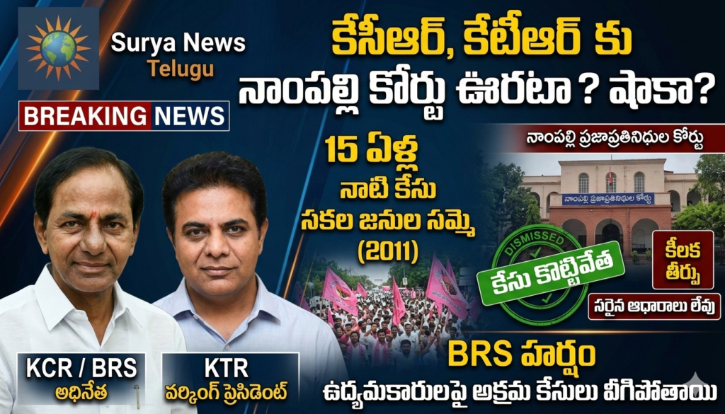 తెలంగాణ ఉద్యమ చరిత్రలో మైలురాయిగా నిలిచిన 2011 సకల జనుల సమ్మె సందర్భంగా నమోదైన కేసును హైదరాబాద్ లోని నాంపల్లి ప్రజాప్రతినిధుల కోర్టు కొట్టివేయడంతో బీఆర్ఎస్ అధినేత కేసీఆర్, వర్కింగ్ ప్రెసిడెంట్ కేటీఆర్ సహా పలువురు కీలక నేతలకు భారీ ఊరట లభించింది.