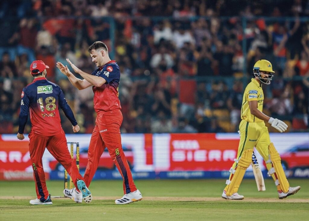 రాయల్ ఛాలెంజర్స్ బెంగళూరు బౌలర్లలో భువనేశ్వర్ కుమార్ (Bhuvneshwar Kumar) అద్భుత ప్రదర్శన చేశాడు. మూడు కీలక వికెట్లు తీసి చెన్నై పతనాన్ని శాసించాడు. జాకబ్ డఫీ, కృనాల్ పాండ్యా, అభినందన్ సింగ్ తలో రెండు వికెట్లు పడగొట్టారు. సుయాష్ శర్మ కు ఒక వికెట్ దక్కింది. ఈ ఆల్ రౌండ్ షో తో బెంగళూరు జట్టు అద్భుత విజయాన్ని సొంతం చేసుకుంది.