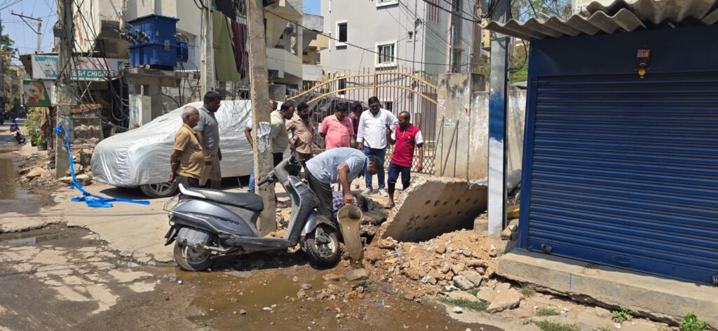 కుత్బుల్లాపూర్:కుత్బుల్లాపూర్ నియోజకవర్గ పరిధిలోని షాపూర్ నగర్ డివిజన్లో గత వారం రోజులుగా స్థానికులను వేధిస్తున్న మురుగునీటి సమస్యకు ఎట్టకేలకు పరిష్కారం లభించింది. రోడ్లపై డ్రైనేజీ నీరు ప్రవహిస్తూ, అపరిశుభ్ర వాతావరణం నెలకొనడంతో స్థానికులు తీవ్ర ఇబ్బందులు ఎదుర్కొన్నారు. ఈ సమస్యపై అధికారులకు విన్నవించినా స్పందన కరువవడంతో, బిఆర్ఎస్ డివిజన్ అధ్యక్షులు పుప్పాల భాస్కర్ స్వయంగా రంగంలోకి దిగి సమస్యను పరిష్కరించారు.