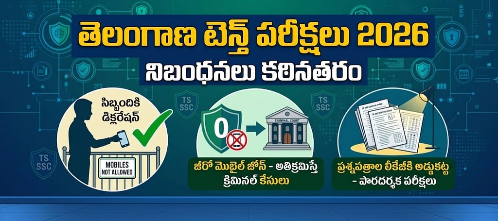 ఇటీవల నిజామాబాద్ జిల్లాలో పరీక్ష జరుగుతున్న సమయంలోనే ప్రశ్నపత్రం (Question Paper) మొబైల్ ఫోన్ల ద్వారా బయటకు వచ్చిన ఘటనను విద్యాశాఖ అత్యంత తీవ్రంగా పరిగణించింది. ఈ నేపథ్యంలో పరీక్షల పారదర్శకతను కాపాడేందుకు కొత్త నిబంధనలు ప్రవేశపెట్టింది. ఇకపై పరీక్షా కేంద్రాల్లో పనిచేసే ఇన్విజిలేటర్లు, ఇతర టీచింగ్ మరియు నాన్ టీచింగ్ సిబ్బంది ఎవరూ కూడా లోపలికి ఫోన్లు తీసుకురావడానికి వీల్లేదు. విధుల్లో చేరే ముందు తమ వద్ద ఎలాంటి ఎలక్ట్రానిక్ పరికరాలు లేవని ప్రతిరోజూ డిక్లరేషన్ (Declaration) ఇవ్వాల్సి ఉంటుంది. ఇందుకోసం ప్రత్యేకంగా రూపొందించిన ‘డే వైజ్ డ్యూటీ రిజిస్టర్’ (Day-wise Duty Register) లో సిబ్బంది తప్పనిసరిగా సంతకం చేయాలి.