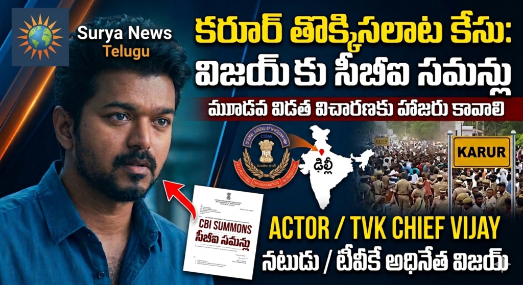తమిళనాడు అసెంబ్లీ ఎన్నికల నేపథ్యంలో నటుడు మరియు తమిళగ వెట్రి కజగం (టీవీకే) అధినేత విజయ్ కు సీబీఐ తాజా సమన్లు జారీ చేసింది కరూర్ తొక్కిసలాట కేసుకు సంబంధించి మూడవ విడత దర్యాప్తు కోసం మార్చి 10, మంగళవారం ఢిల్లీలోని సీబీఐ ప్రధాన కార్యాలయంలో స్వయంగా హాజరు కావాలని కోరింది.